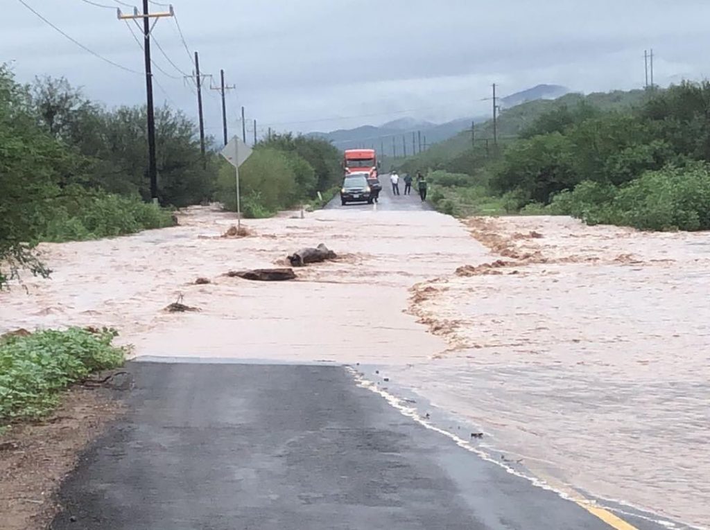 Mientras que en el libramiento Guaymas-Obregón elementos de Protección Civil lograron rescatar a dos personas que quedaron varadas en un camión de carga, ya que incluso la corriente arrastró a algunas vacas que pastoreaban a la orilla de la carretera.