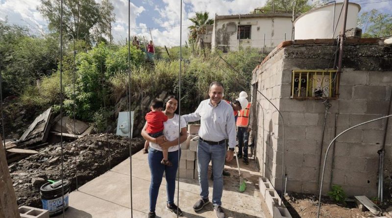 La señora Karime Itzel Mada Limón, una de las beneficiadas de la primera etapa de este programa, lo acompañó a la colocación del primer block del nuevo espacio y agradeció la mejora en las condiciones de vida que representa para su familia.