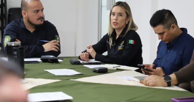 Presentes: Roberto Leyva Lerma, comisario general de la Coordinación Estatal de la Policía Estatal de Seguridad Pública; Jorge Luis Portillo Arvizu, presidente municipal de Nácori Chico; Arabela García Quijada, presidenta municipal de Tepache; y Miguel Obed Robinson Bours del Castillo, presidente municipal de Villa Pesqueira.