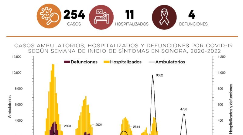 Hermosillo. La Secretaría de Salud de Sonora (SSA) confirmó 254 nuevos casos de Covid-19 y cuatro defunciones por la enfermedad, en la semana epidemiológica 50, que abarca del 11 al 17 de diciembre.