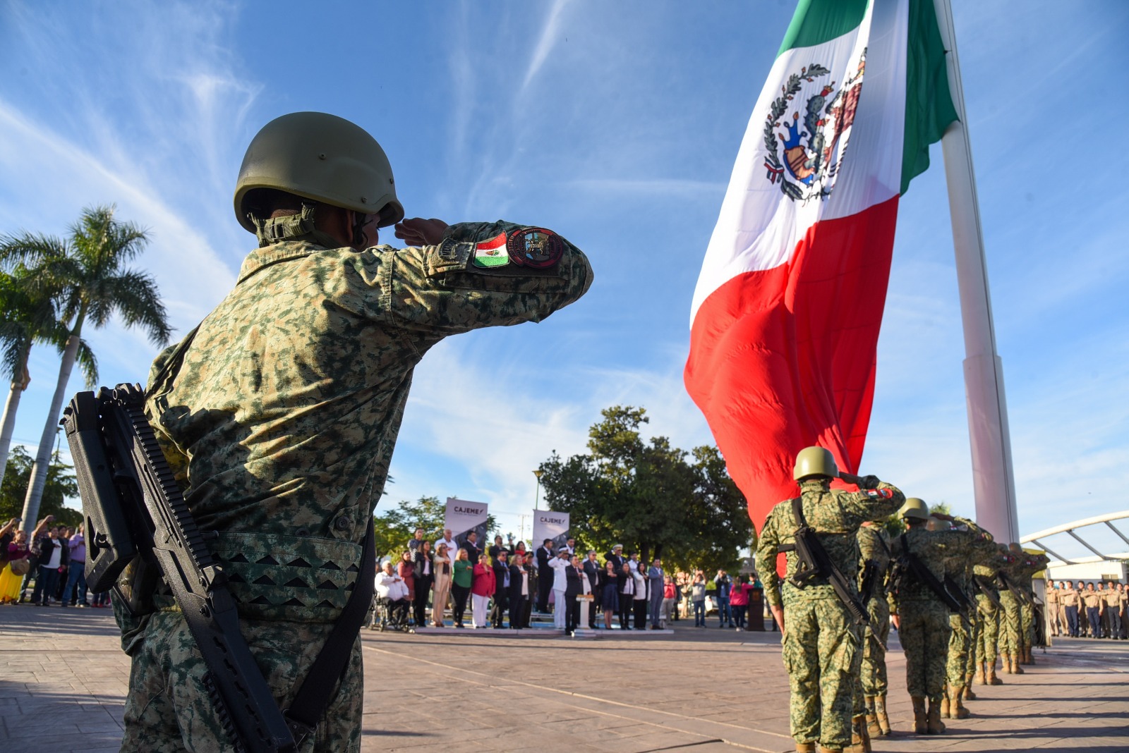 El evento empezó con el izamiento de bandera en la plaza Álvaro Obregón y posteriormente el desfile cívico-deportivo, mismos que fueron presididos por el Alcalde Lamarque Cano junto con su esposa y Presidenta del Voluntariado DIF Cajeme, Patricia Patiño Fierro, así como funcionarios municipales y autoridades militares para celebrar el 113 aniversario de inicio de la Revolución, en el que participaron 2 mil 770 personas, 39 contingentes, 54 vehículos y 4 motocicletas, tanto de organismos civiles, dependencias municipales, corporaciones de los tres niveles de gobierno y las Comisarías de la localidad; los cuales fueron presenciados por las familias de Cajeme.