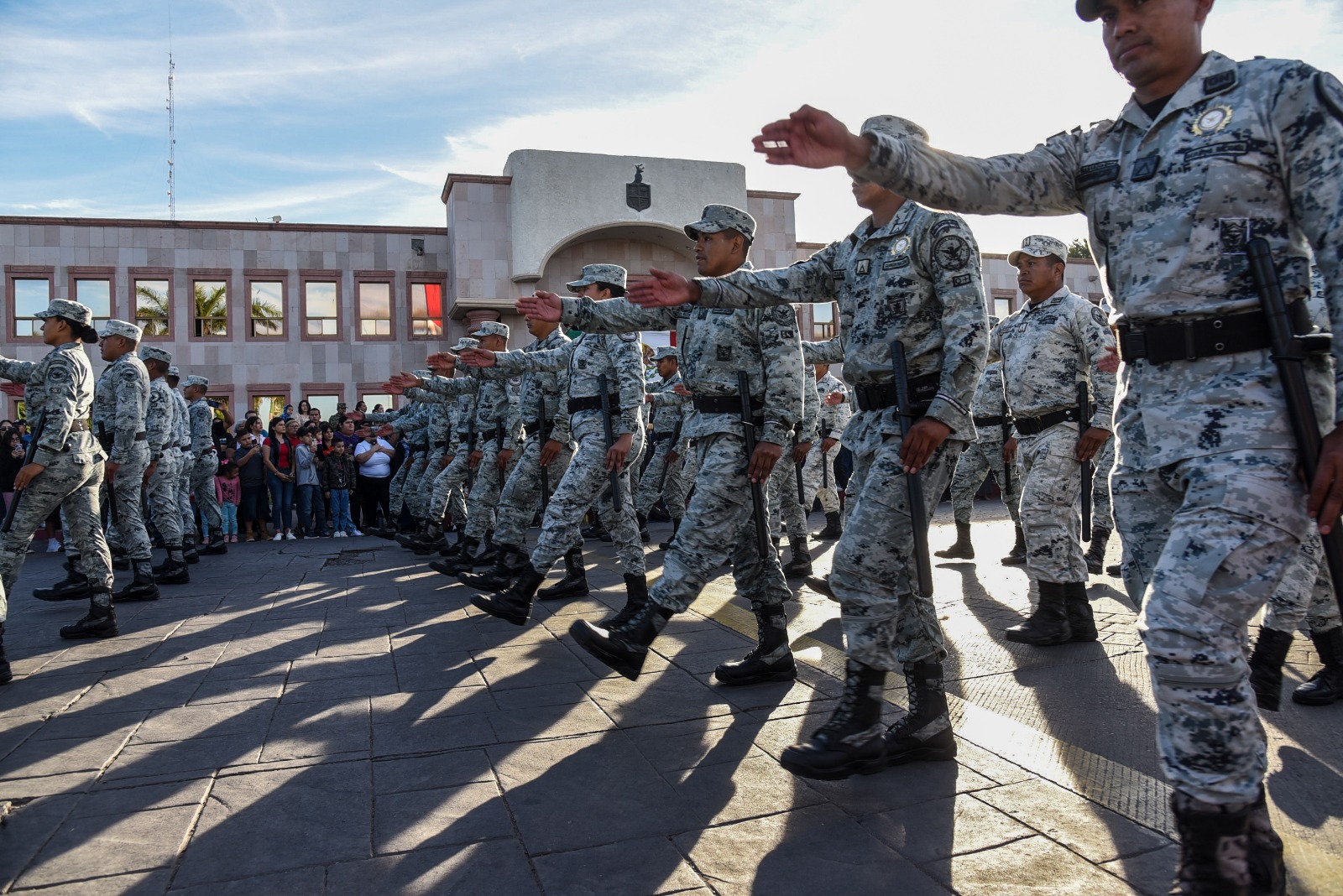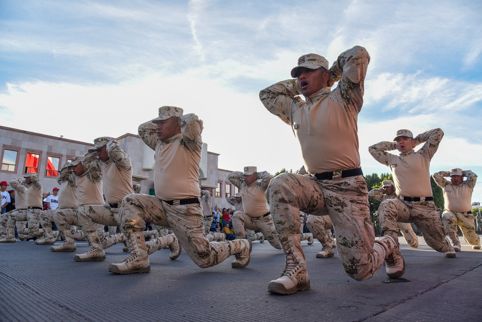 La SEDENA, representada por personal del 60 Batallón de Infantería inició el recorrido motorizado, seguido por la Secretaría de Marina, el contingente de la Guardia Nacional en Carreteras e Instalaciones de Sonora, Cadetes de la Academia de Policía, unidades de la Secretaría de Seguridad Pública Municipal; Cruz Roja Delegación ciudad Obregón, el departamento de Bomberos, el Sindicato Único de Trabajadores al Servicio del Ayuntamiento de Cajeme, el Sindicato Único de Trabajadores del Oomapasc, el Instituto Municipal del Deporte y los contingentes de cada una de las cinco demarcaciones municipales.