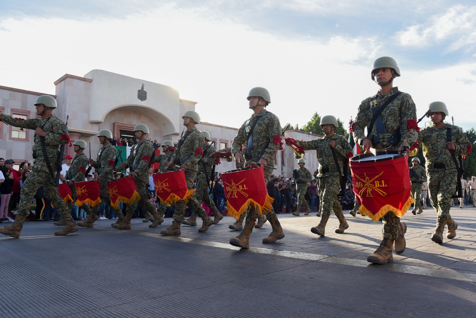 El desfile inició en las calles 5 de Febrero y Galeana, partiendo hacia el norte hasta la avenida Allende, saludando con vista hacia la derecha, según la ordenanza militar, para concluir en calle Sonora y Allende.