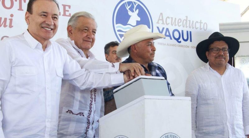 El día de ayer, estuvo de nueva cuenta el presidente de México ANDRÉS MANUEL LÓPEZ OBRADOR, quien estuvo en esta entidad después de haber visitado previamente los estados de Sinaloa y Baja California Sur, con el objeto de inaugurar el “Acueducto y sistema de agua potable del pueblo yaqui”. Como anfitrión el gobernador constitucional del estado ALFONSO DURAZO MONTAÑO, obvio también estuvieron presentes dos gobernadores de la etnia yaqui. Con el mandatario nacional AMLO le acompañaban el director general del agua GERMAN MARTINEZ, así como el director general de los pueblos indígenas, ADELFO REGINO MONTES.