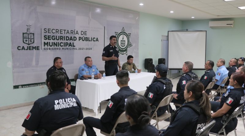 Para alentar a las y los agentes de la Secretaría de Seguridad Pública Municipal a redoblar esfuerzos para mejores resultados hacia las familias cajemenses, el Comisario Claudio Cruz Hernández, sostuvo una reunión con la tropa de la corporación policial.