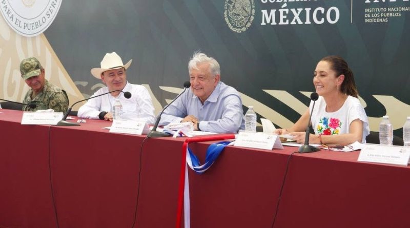 Presiden Gobernador Durazo, presidente López Obrador y presidenta electa Sheinbaum continuidad de restitución de derechos a comunidad Seri