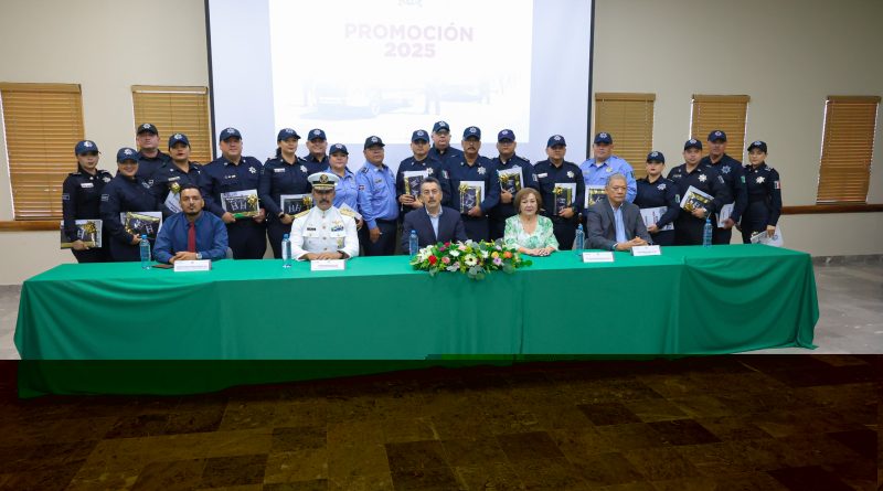 En una emotiva ceremonia, un total de 19 policías municipales fueron ascendidos de grados, de los cuales, once pasarán a ser grado terceros, seis segundos y dos primeros, esto por su arduo trabajo y disciplina constante que día con día realizan.