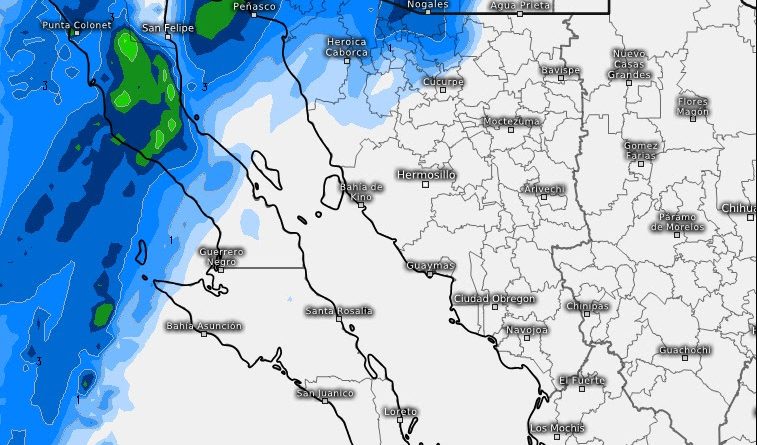 Asimismo, existe la probabilidad de precipitaciones ligeras a moderadas en municipios del noroeste de Sonora durante la noche de este martes y el día 24 de diciembre.